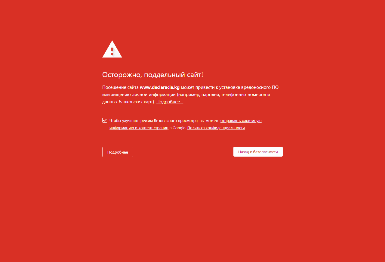 «Если кто-то решил воспользоваться электронной формой заполнения Единой налоговой декларации, можете заходить на сайт без опаски. У некоторых пользователей появляется предупреждение. Причина в том, что иногда Google (если открываете сайт через его браузер) начинает выдавать такое предупреждение об опасности пользования сайтом. Когда вы вводите свои данные (ИНН, фамилию, другие цифры), система думает, что это может быть небезопасно. Однако сайт безопасный», — пояснили в ГНС.