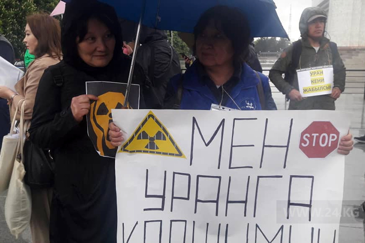 Представители Партии зеленых собрались в Бишкеке и выступают против добычи урана. Ранее суд запретил проводить митинг на площади Ала-Тоо, обосновав это тем, что там запланировано мероприятие.