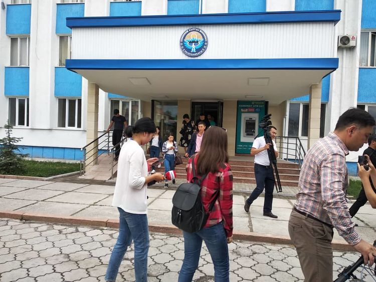 У здания полномочного представителя правительства в Чуйской области журналисты собрались на митинг с требованием отставки главы региона Туйгунаалы Абдраимова.