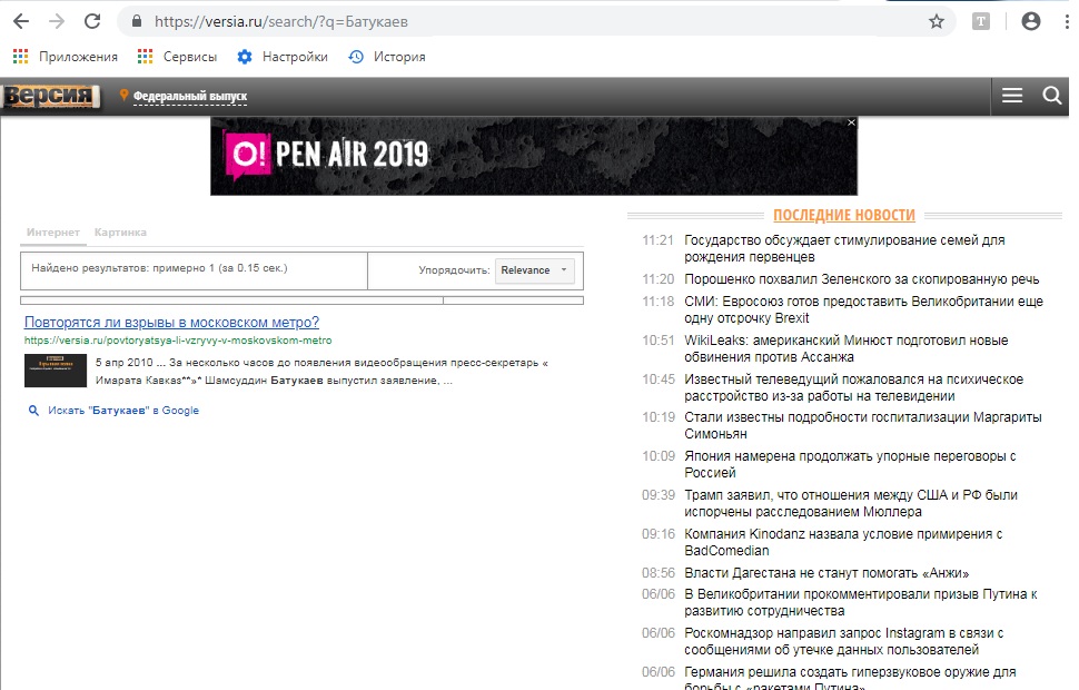 По запросу «Атамбаев» публикаций больше. Но интервью с Батукаевым среди них тоже не обнаружено. Поиск по заголовку также не выдал ни одной публикации.
