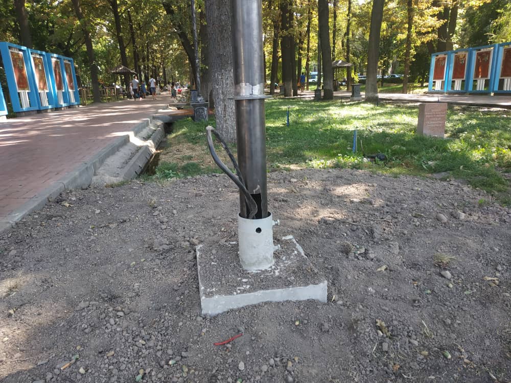 На бульваре Эркиндик устанавливают бетонные основания для опор освещения и отреставрированные тумбы. Об этом сообщили в пресс-службе мэрии Бишкека.