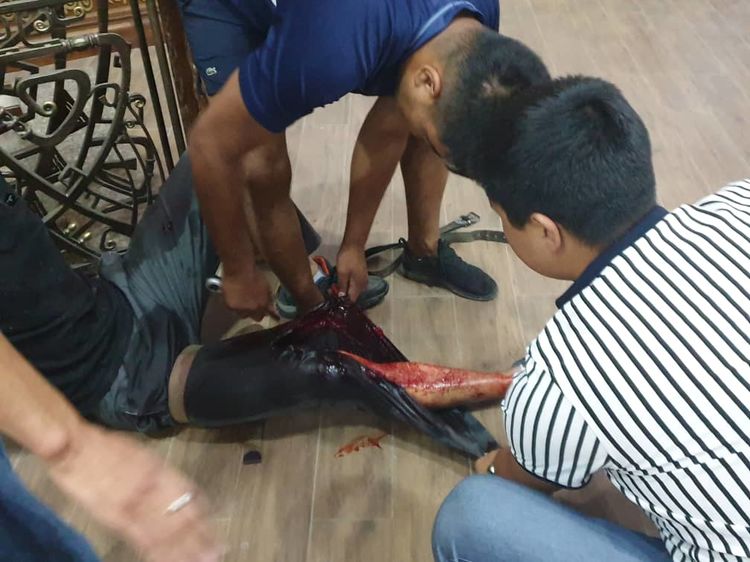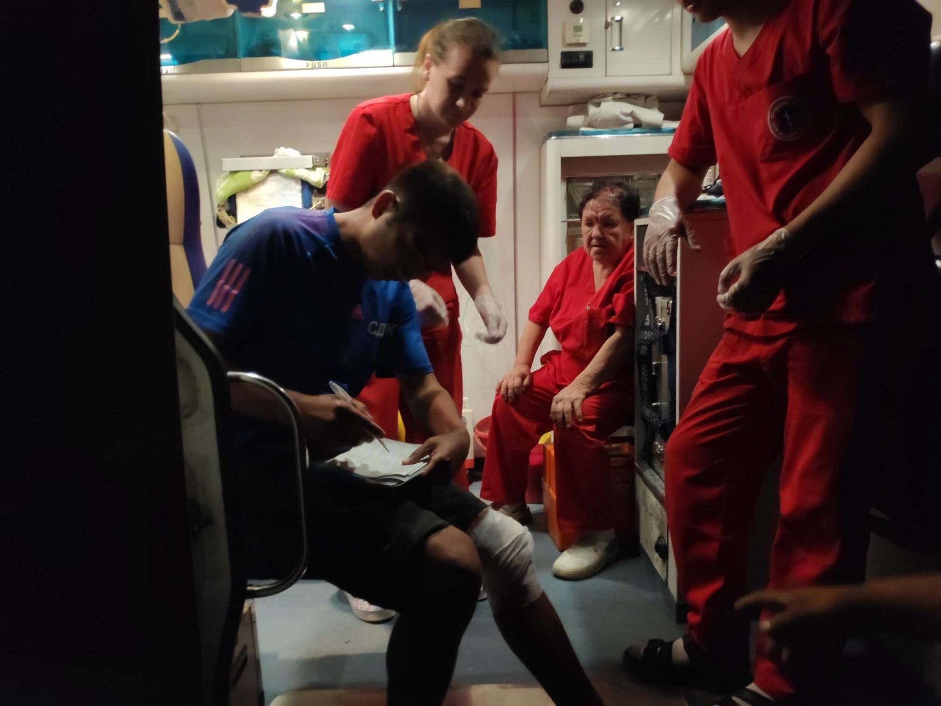23.27 Бригады скорой помощи на месте оказывают помощь раненым.