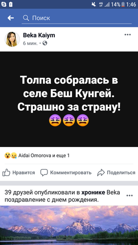 01.54 Асия Сасыкбаева выложила на своей странице в Facebook обращение партии «Ата Мекен» к президенту Сооронбаю Жээнбекову, в котором политобъединение требует немедленного прекращения силового противостояния и поиска других, приемлемых путей для решения данной проблемы.