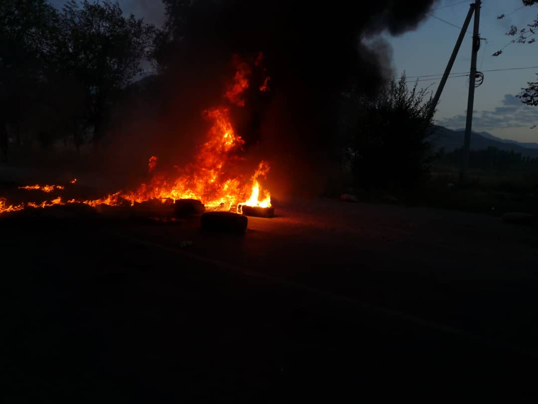 16.28 На подъезде к селу Беш-Кунгей заблокирована дорога. Машины не пропускают. Силовики не пропускают никого вверх в сторону Кой-Таша. Можно пройти только пешком. Связи практически нет.