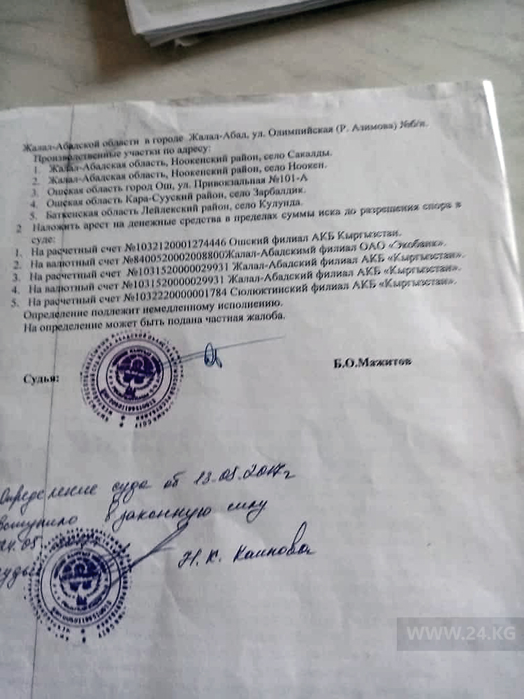 Она представила часть документов, доказывающих причастность Эркинбека Чодуева: