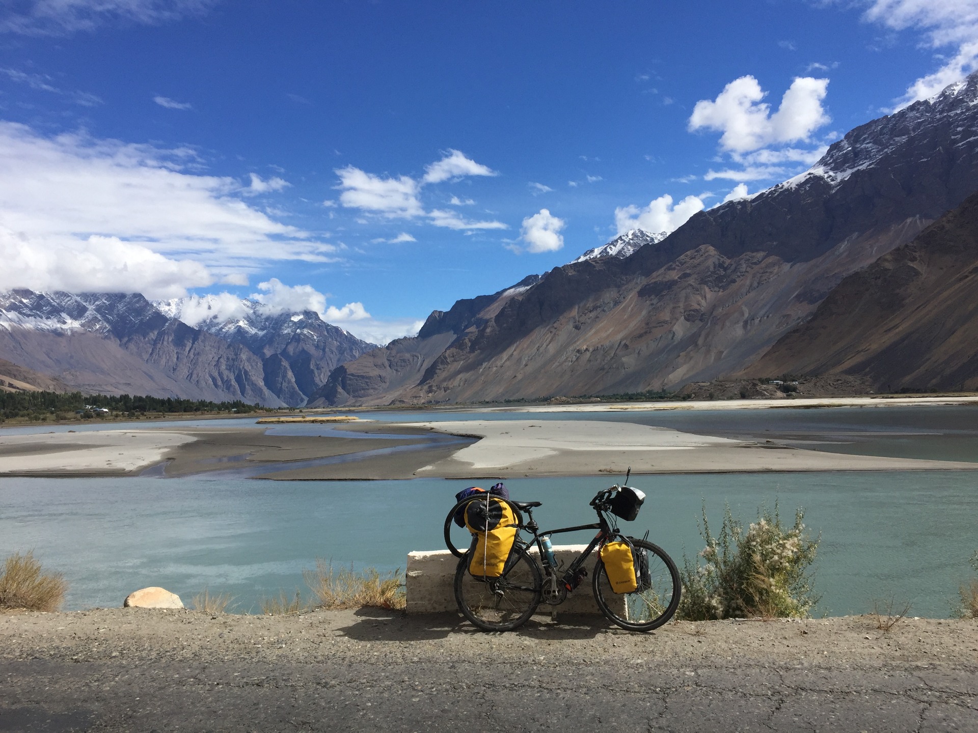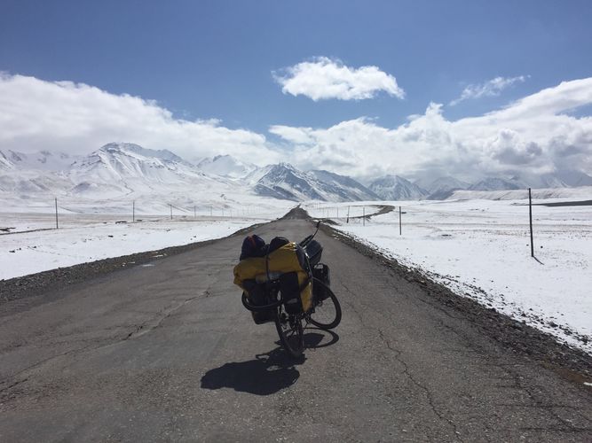 Я наслаждался красотами в одиночестве, крутя педали велосипеда среди заснеженных гор. Удивительно, насколько красива природа, я все время ехал, разинув рот от изумления.