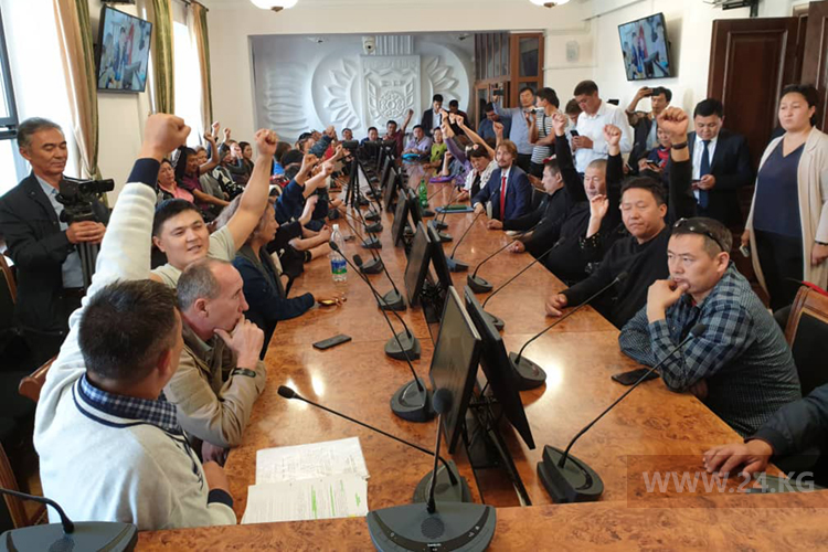 Участники акции протеста согласились отправить своих представителей на встречу с мэром столицы Азизом Суракматовым.