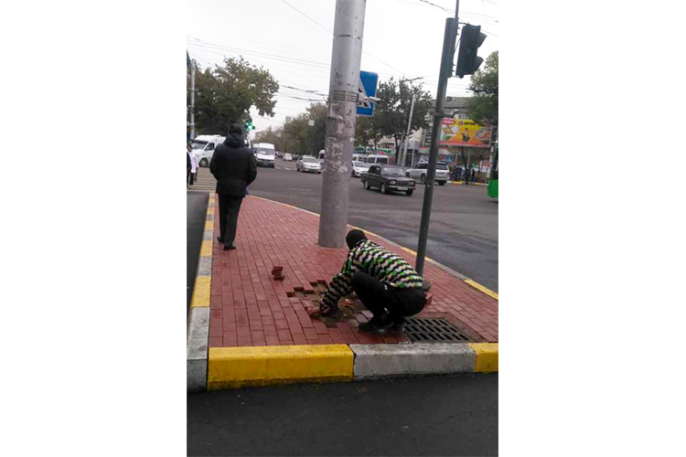 В муниципалитете отреагировали быстро. Сотрудники Бишкекасфальтсервиса переложили брусчатку.
