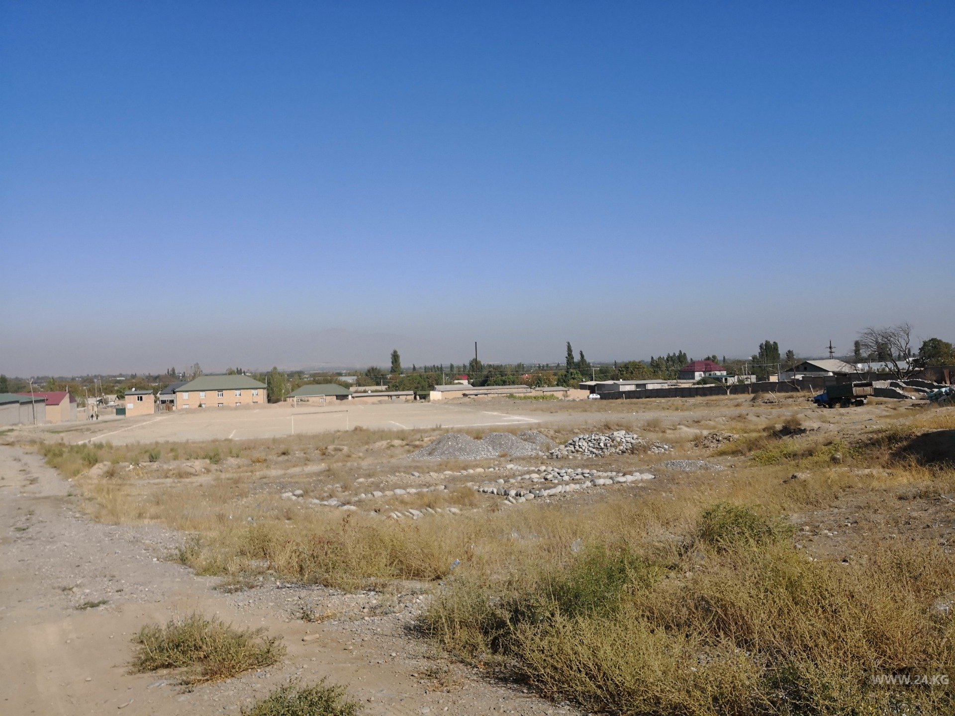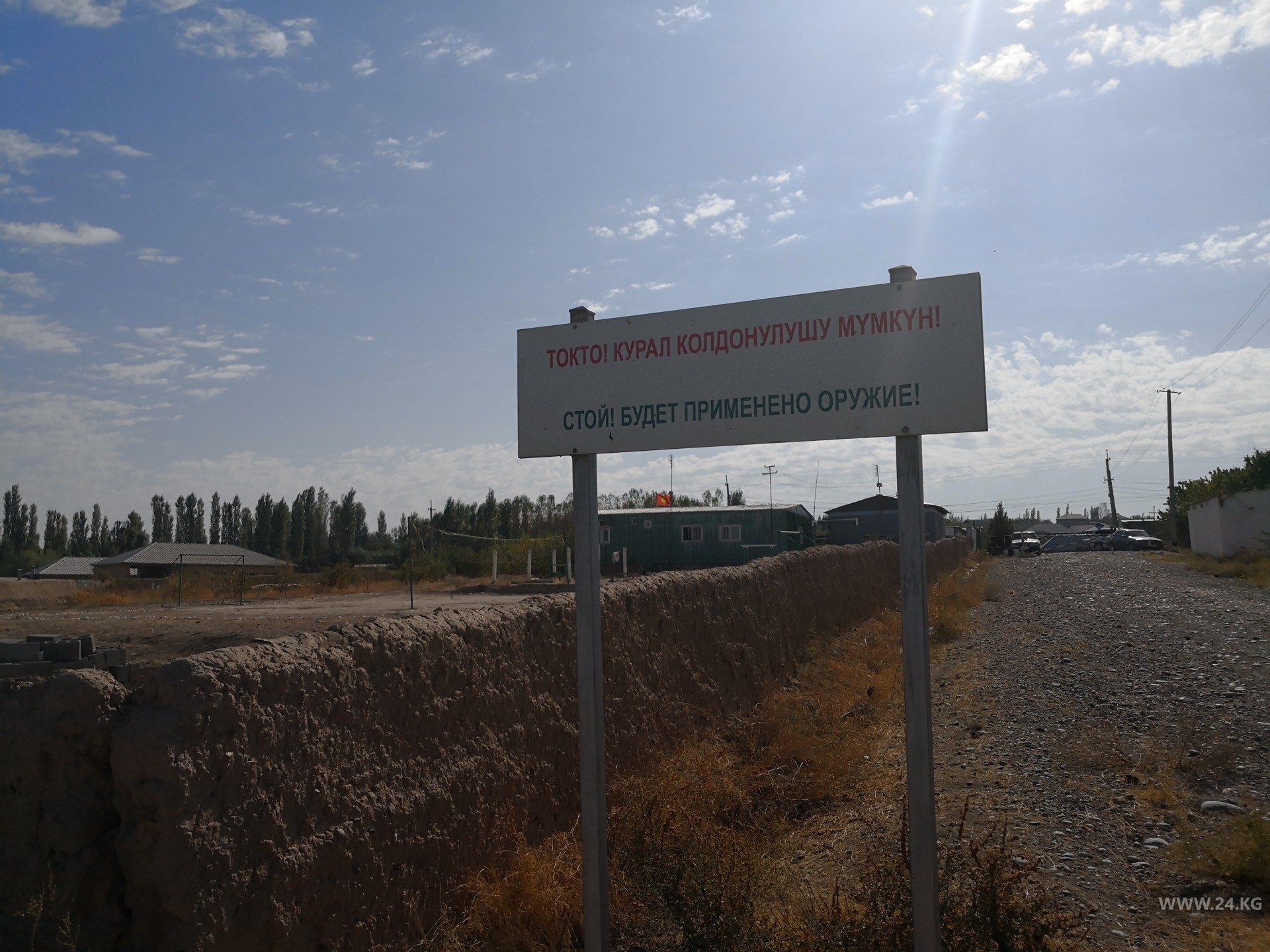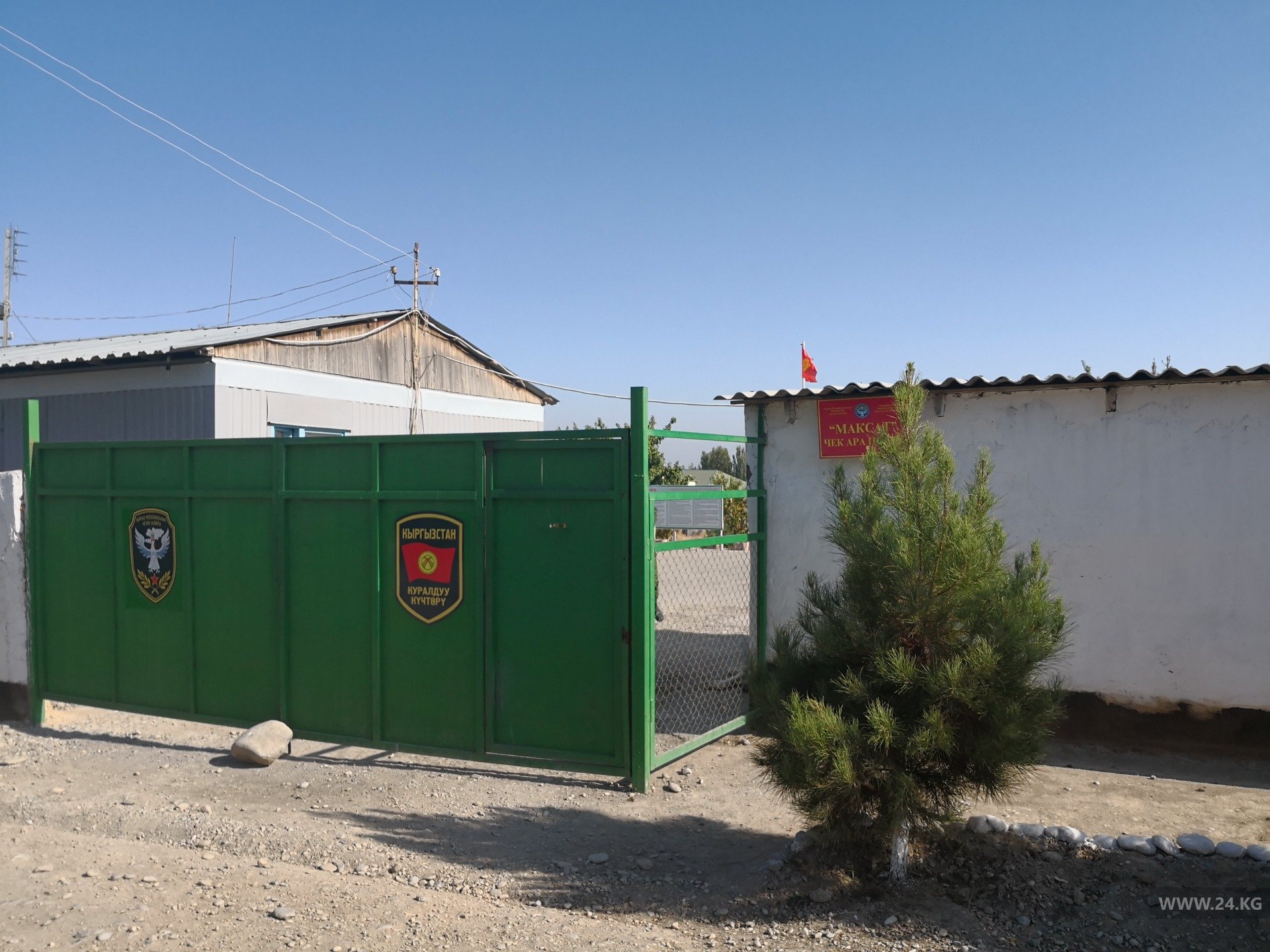 Прямо за стадионом расположена погранзастава Кыргызстана. Вышку после конфликта убрали.
