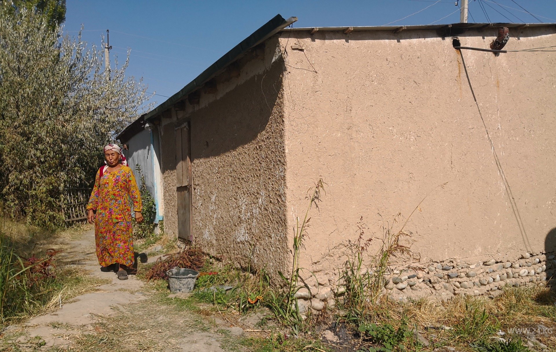 Дом дочери Нарбубу Шымаматовой находится рядом с участком «Футбольное поле». Она переехала жить к дочке после очередной перестрелки. Присматривает за внуками.«Она мать-одиночка. Уже холодно, а разбитые стекла, дыры в крыше и стенах до сих пор не отремонтированы. Вчера военные Таджикистана без спроса забрали три тачки щебня. Ну могли бы не отбирать у сирот», — сокрушается женщина.