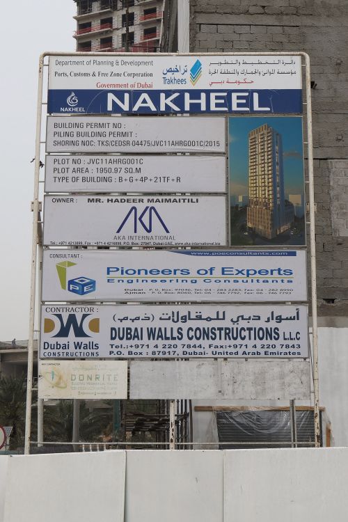 Но у Habib Residences совсем другой номер для поиска месторасположения — JVC11OMRA004. Об этом говорят фотографии, сделанные ранее журналистами. Эту информацию подтверждают и данные сайта ProTenders. Там под номером JVC11OMRA004 указано здание Mixed Use Building at Al Barsha South. Никаких сведений об объекте или его эскизов нет. Есть только информация, что здание начали строить в марте 2017-го, а окончание проекта планируется на март 2020 года.