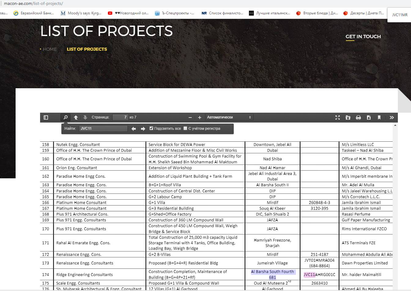 Вернемся к AKA Residences. Поиск по номеру объекта в интернете приводит к фирме Mansoor concrete block industry. Сокращенно она называется MaCon и указывает на своем сайте, что поставляет бетонные блоки для строительства зданий. На портале компании есть и список проектов, в которых она участвовала.