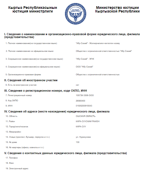 В базе данных Министерства юстиции Кыргызстана зарегистрированы две фирмы с названием «Абу-Сахий».