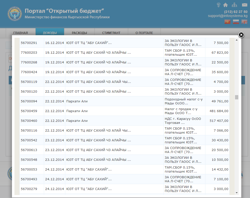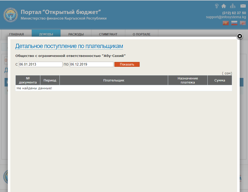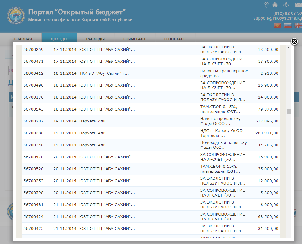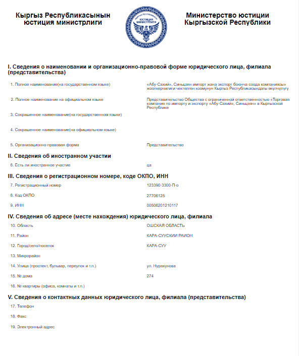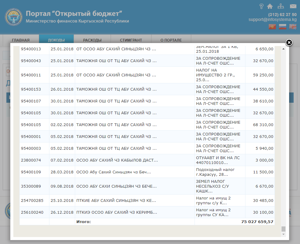 С 2013 по 2018 год представительство ОсОО «Торговая компания по импорту и экспорту «Абу-Сахий», Синьцзян» в Кыргызстане заплатило 75 миллионов 27,6 тысячи сомов налогов и платежей.