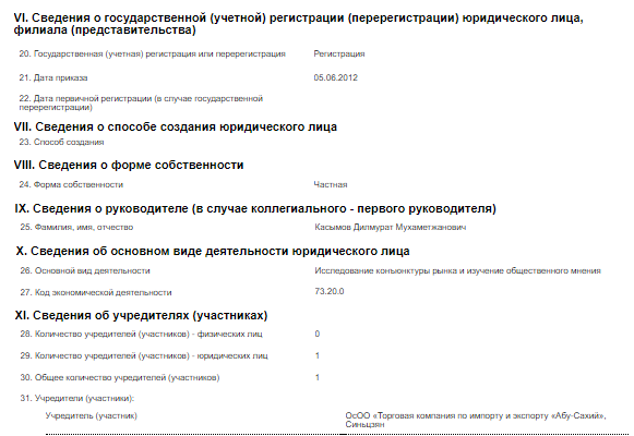 А вот вторая компания более активна. Представительство ОсОО «Торговая компания по импорту и экспорту «Абу-Сахий», Синьцзян» в Кыргызстане зарегистрировано также в Кара-Суйском районе Ошской области в июне 2012 года. Учредителем является ОсОО «Торговая компания по импорту и экспорту «Абу-Сахий», Синьцзян», а руководителем — Дилмурат Касымов.