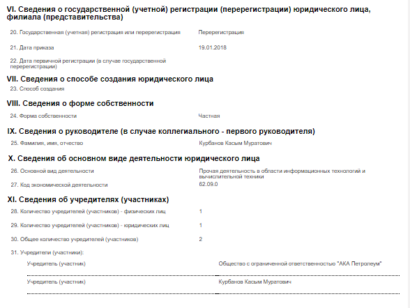 Из ОсОО «Ака минералз энд майнинг», занимающегося добычей природных минералов и горных пород, она стала ОсОО «Ака Инвест», которое специализируется на прочей деятельности в области информационных технологий и вычислительной техники.