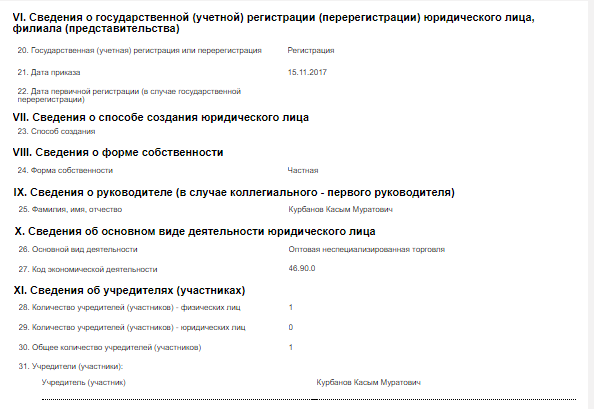 ОсОО «Штарк Групп» занимается оптовой неспециализированной торговлей и зарегистрировано в ноябре 2017 года. Учредителем и руководителем является Касым Курбанов. Налоги и платежи фирма платит исправно. За два года она перечислила в бюджет 2,5 миллиона сомов.