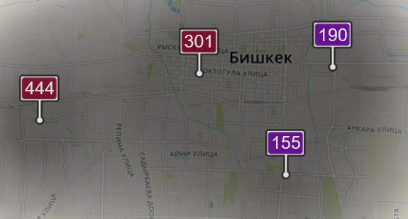 - в жилмассиве «Ак-Орго». Уровень загрязнения превышен в 4,65 раза: PM2.5 среднесуточный — 163 мкг/м³, на момент измерения — 444 мкг/м³;