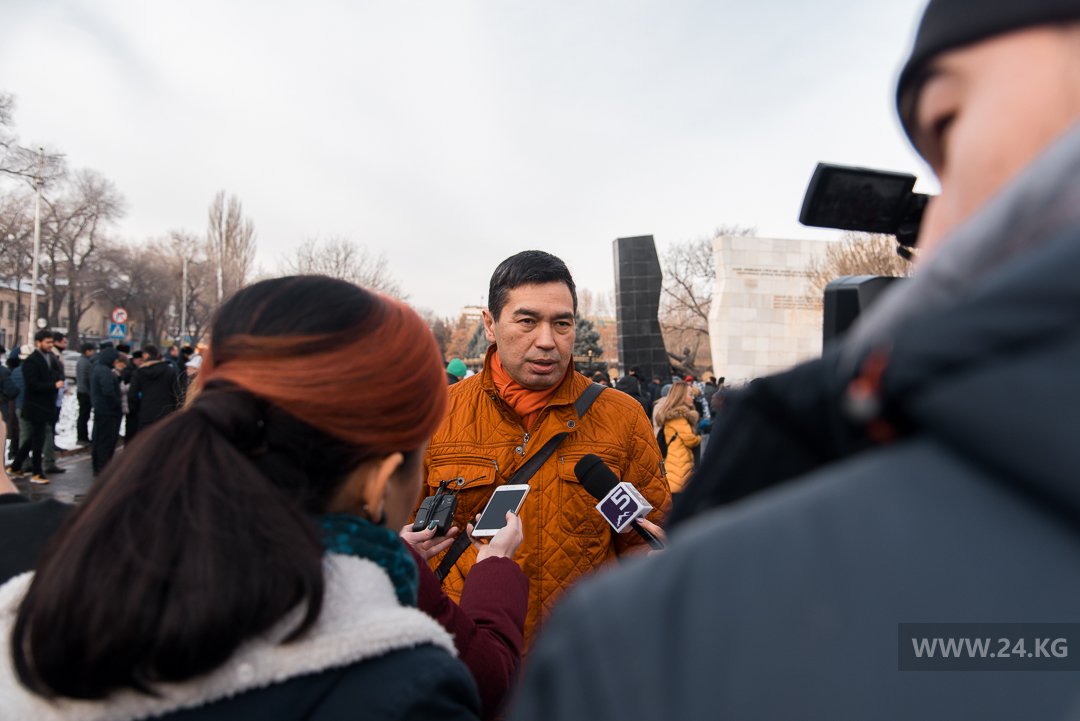 Это вторая подобная акция в столице Кыргызстана за последний месяц. На митинге собрались журналисты, представители общественности, НПО и просто неравнодушные граждане.