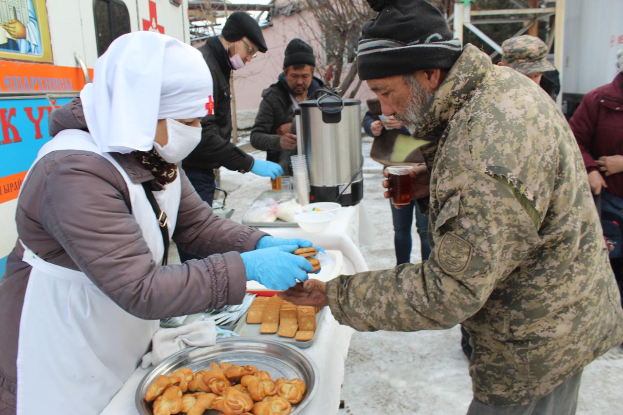 «Бишкекская туберкулезная больница провела обследование людей на передвижном рентгенавтомобиле, сотрудники Бишкекского центра профилактики и борьбы со СПИДом — на ВИЧ-статус. Волонтеры Национального общества Красного Полумесяца Кыргызстана привезли теплую одежду и одеяла, начали поиски близких и родственников постояльцев. Помощь оказала и благотворительная организация «Бишкекская и Кыргызстанская епархия», помимо теплой обежды и обуви, ее волонтеры провели сеансы психологической поддержки и угостили бездомных горячим чаем со сладостями. Кроме того, бездомных проконсультировали по трудоустройству», — отметили в мэрии.