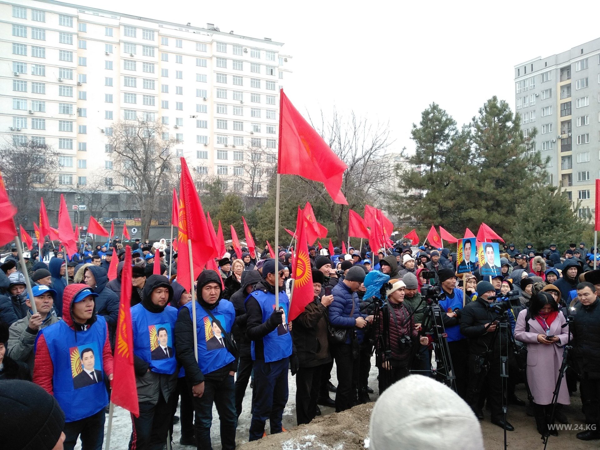 В Бишкеке в сквере имени Максима Горького продолжается мирный митинг в поддержку Садыра Жапарова.