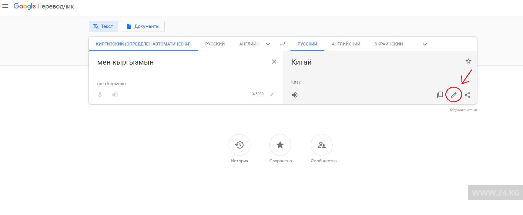 Пользователи интернета возмущены тем, что гугл-переводчик фразу «мен кыргызмын» (я кыргыз) переводит как «Китай». Скриншоты результатов перевода распространяются в социальных сетях.