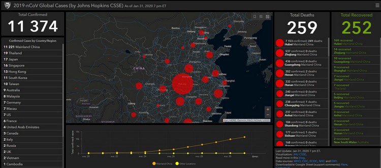 От нового коронавируса в Китае умерло 259 человек. Об этом свидетельствуют данные онлайн-карты, разработанной учеными.