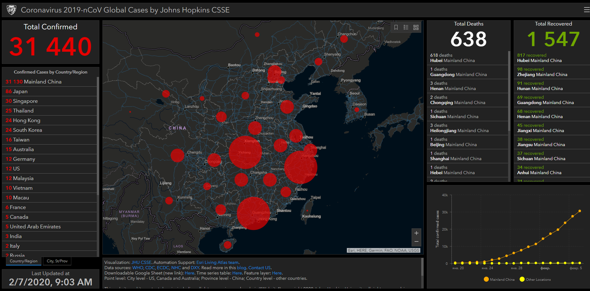За последние сутки число погибших от нового коронавируса в Китае увеличилось до 638 человек. Об этом свидетельствуют данные онлайн-карты, разработанной учеными.