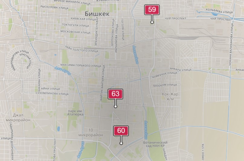 По нормам ВОЗ среднегодовой уровень РМ2.5 должен составлять не больше 10 мкг/м³, а среднесуточный — не больше 25 мкг/м³. В национальном законодательстве КР — 35 мкг/м³. Именно он взят для расчетов. Разовая допустимая концентрация, по данным «МувГрин», установленная в национальном законодательстве, — 160 мкг/м³.