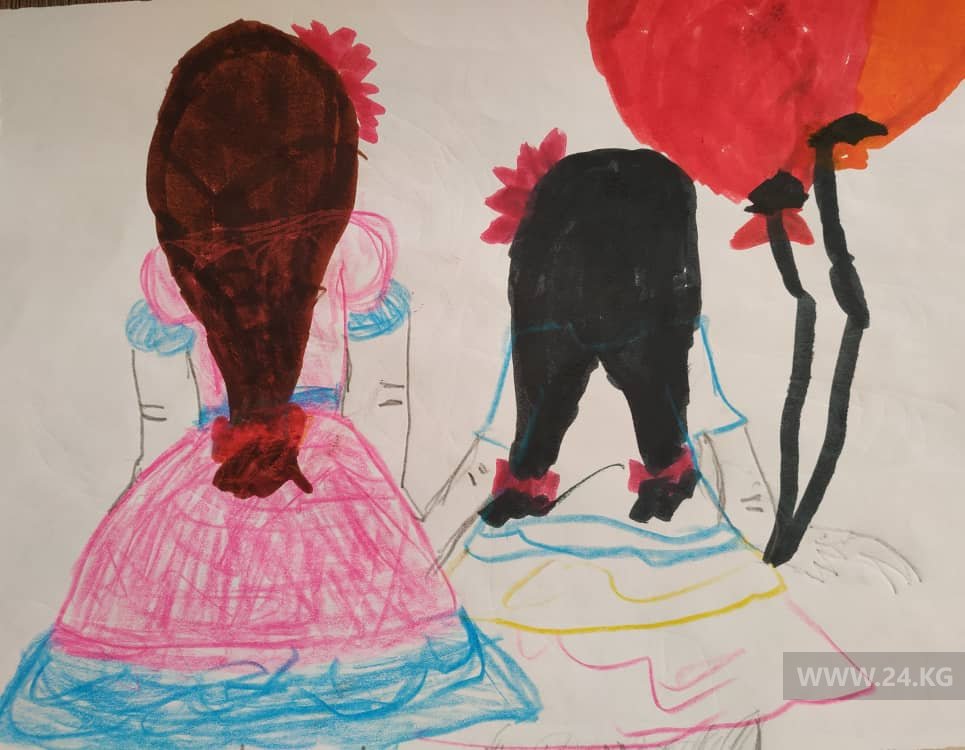 «У Айназик ясный ум, она хорошо рассуждает и великолепно шутит. Чувство юмора для меня — показатель высокого интеллекта. Поэтому возникает вопрос, кто поставил такой диагноз. И у меня есть неофициальный ответ — без него ребенка просто не определят в такие учреждения. Посмотрите, как прекрасно рисует девочка», — показывает ее работы Чинара Абдылдаева.