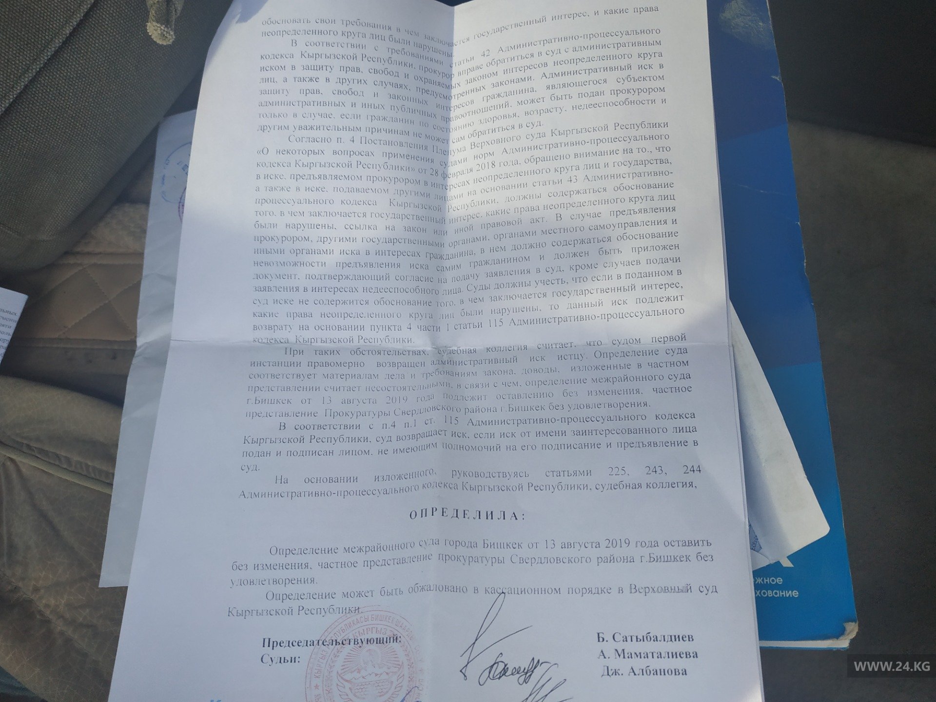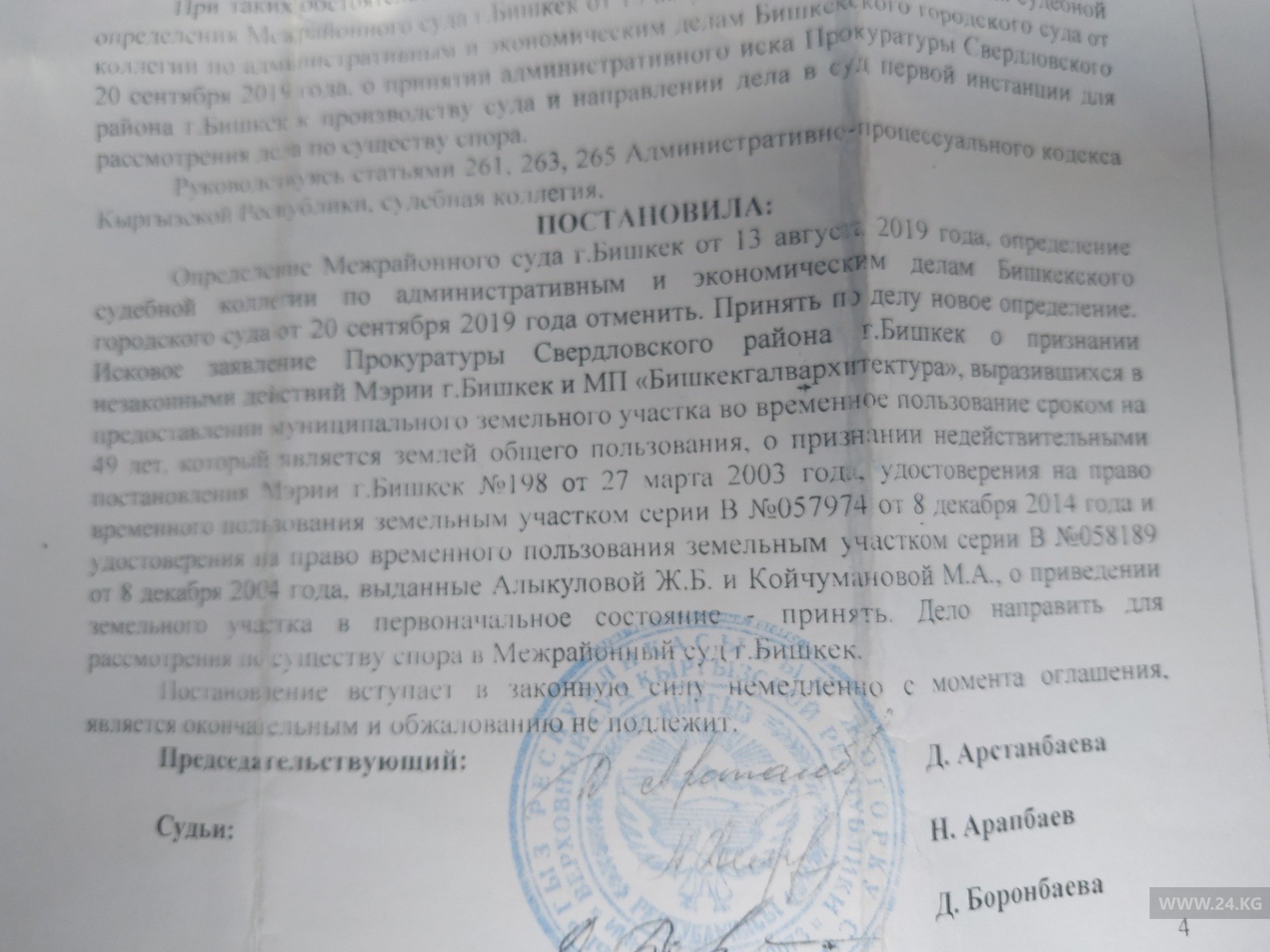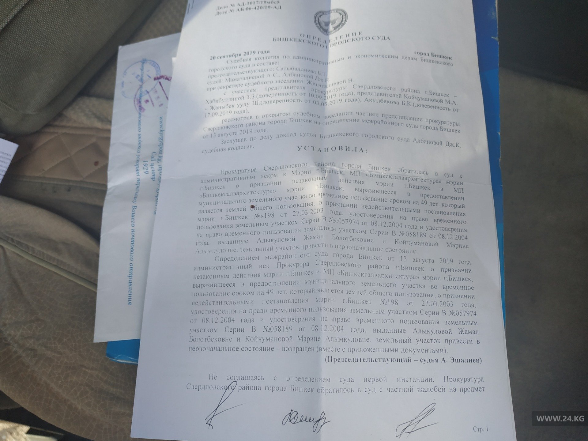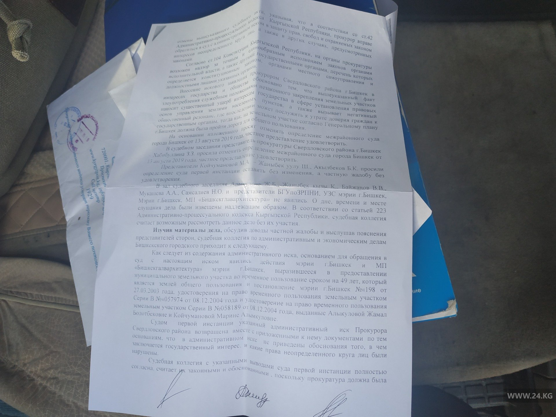 Прокуратура подала иск и по его земельному участку. Но ответчик не нынешний владелец, а Бишкекглавархитектура (БГА), которая якобы незаконно предоставила землю в аренду.