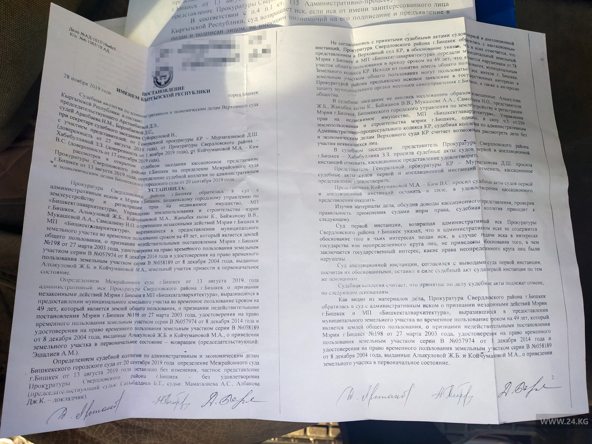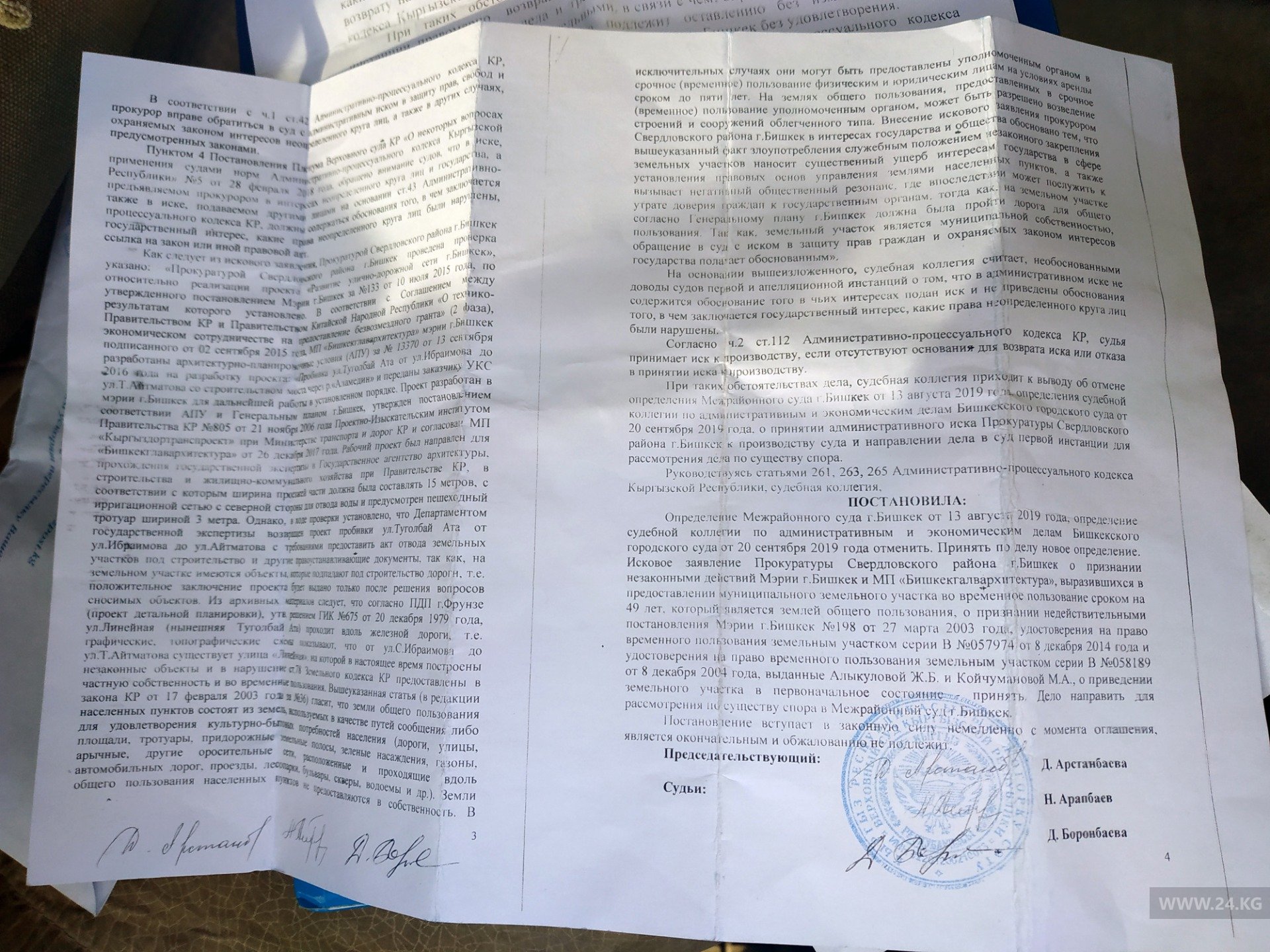 Интересно, что оспаривается законность выдачи госакта на один участок, выделенный городскими властями, а арест наложили на все — так как Станиславу пришлось их объединить, чтобы начать строительство. Такое требование есть у Бишкекглавархитектуры.
