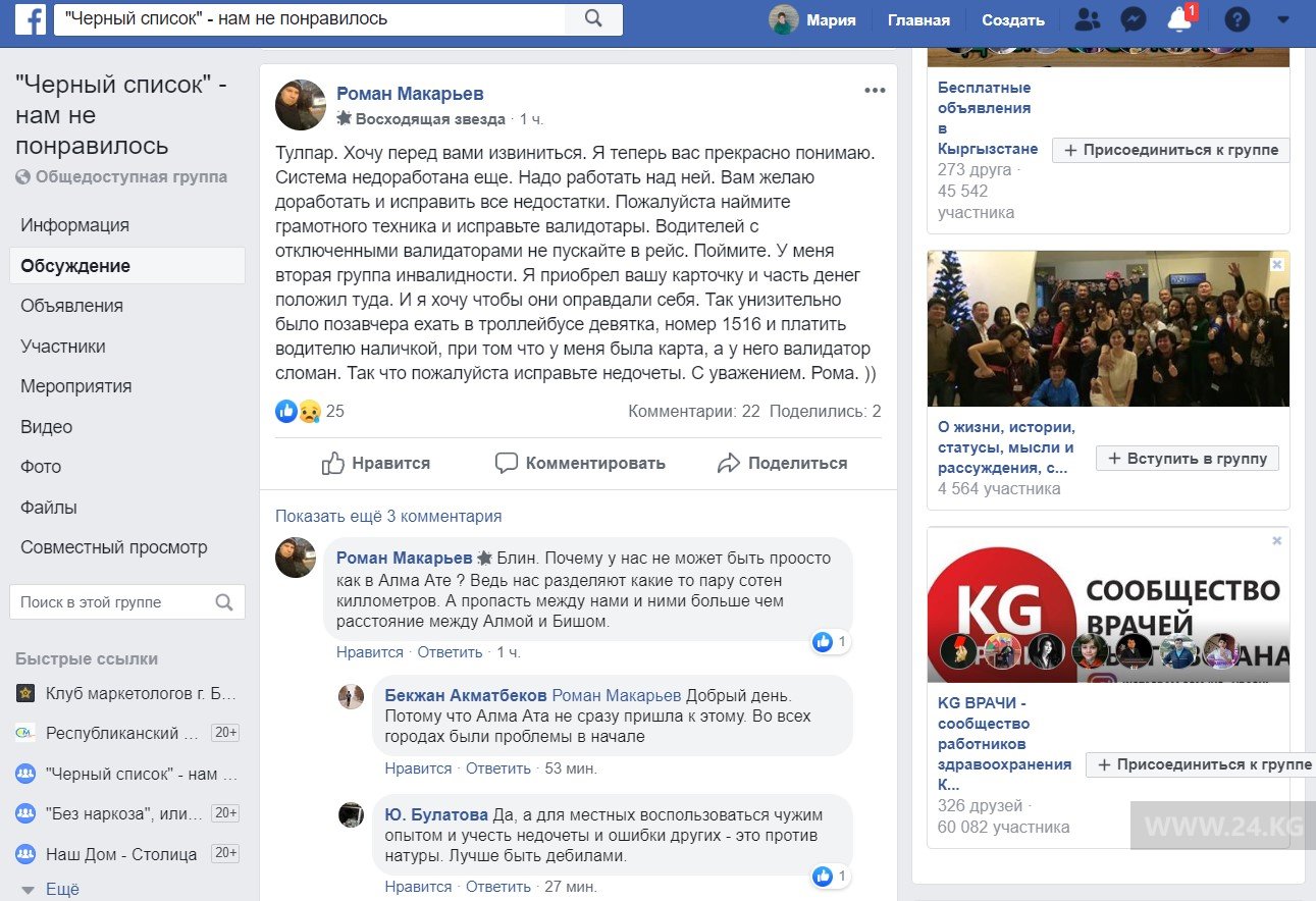 «Водителей с отключенными валидаторами не пускайте в рейс. Поймите. У меня вторая группа инвалидности. Я приобрел вашу карточку и часть денег положил туда. Я хочу, чтобы они оправдали себя. Так унизительно было позавчера ехать в троллейбусе № 9, госномер 1516, и платить водителю наличкой: у меня была карта, а у него валидатор сломан», — написал Роман Макарьев.