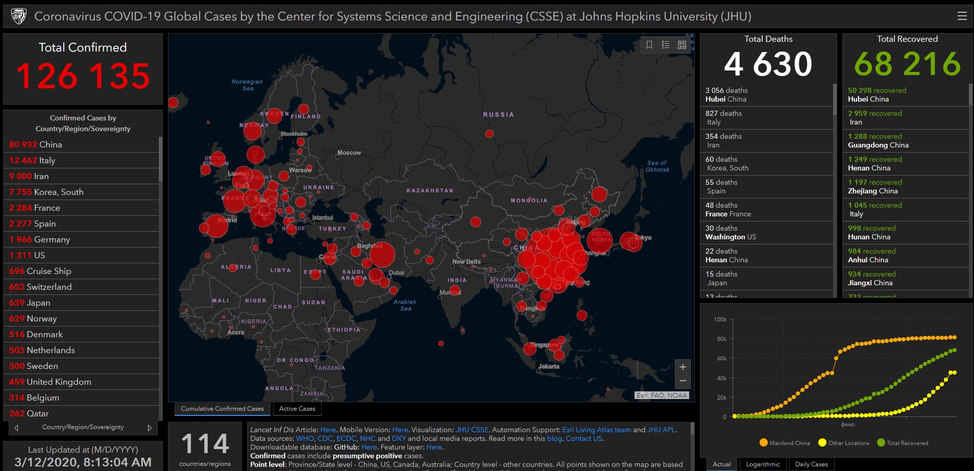 За пределами Китая подтвердили 45,2 тысячи случаев заболевания в 114 государствах. Отмечается, что больше всего больных в Италии (12 тысяч 462), Иране (9 тысяч), Южной Корее (7 тысяч 755), Франции (2 тысячи 284), Испании (2 тысячи 277) и Германии (1 тысяча 966).Всемирная организация здравоохранения объявила вспышку коронавируса в мире пандемией.