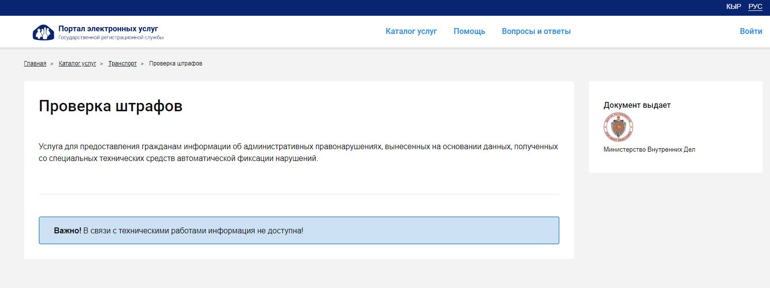 Как сообщается, технические работы завершаются и в кратчайшие сроки сервис проверки штрафов будет доступен для граждан.