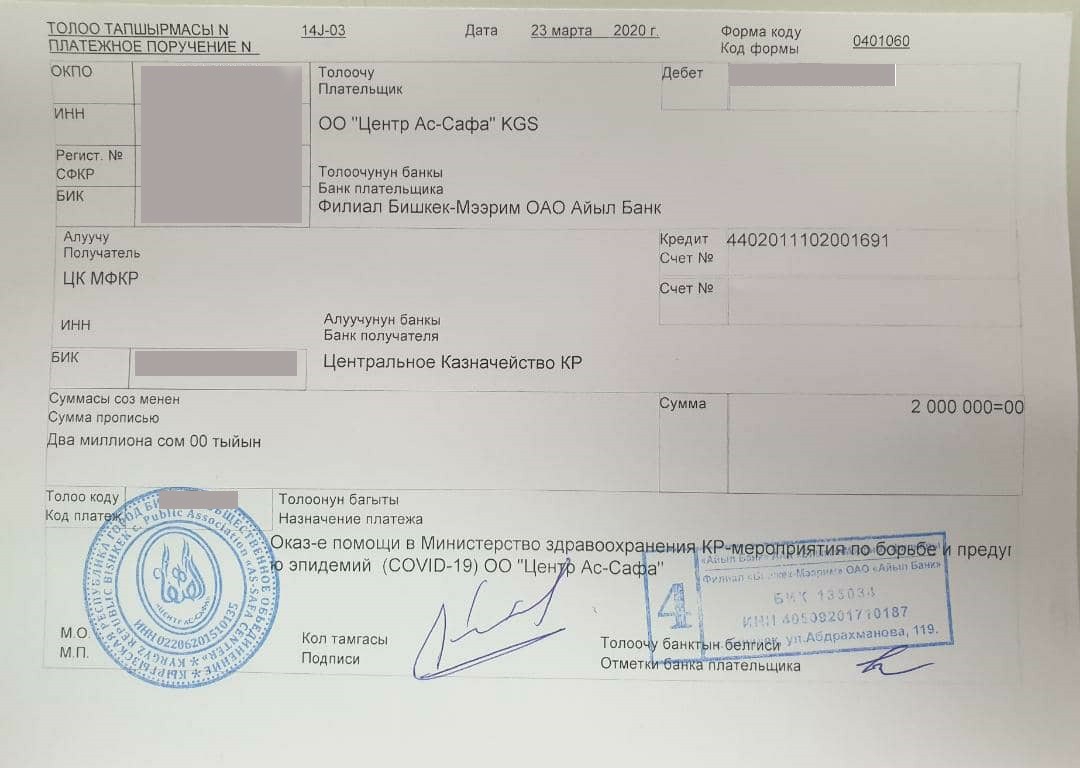 Отмечается, что всего на борьбу с коронавирусом в Кыргызстане фонд выделил $200 тысяч, из них 2 миллиона сомов переведены на специализированный счет Минфина КР.