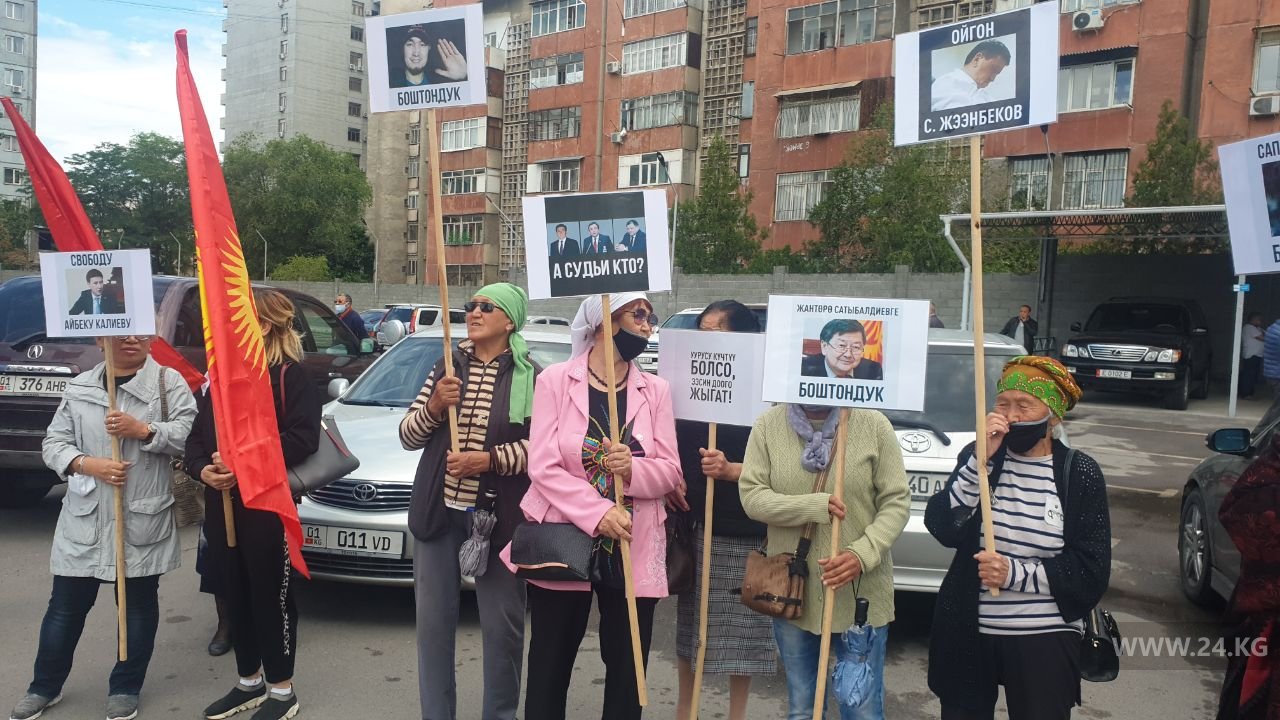 В Бишкеке около здания Первомайского районного суда проходит митинг в поддержку бывшего премьер-министра Сапара Исакова.
