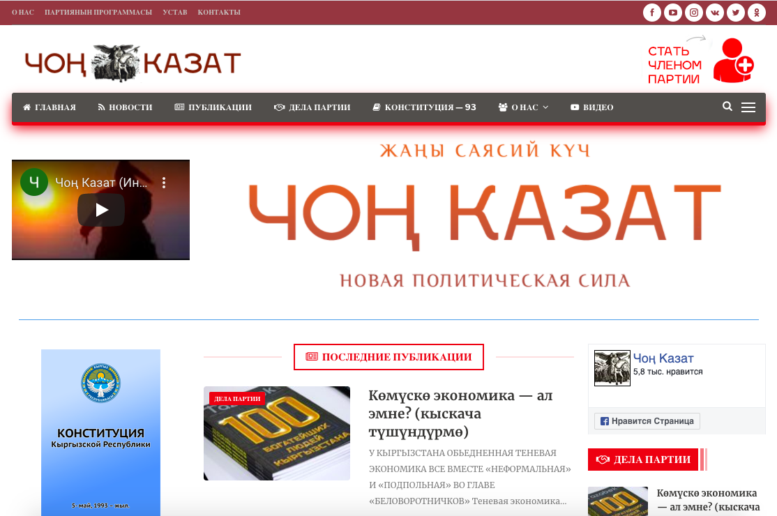 У партии «Чон Казат» тоже есть свой сайт — chonkazat.kg. Он разработан раньше, чем зарегистрирована сама политорганизация — в феврале 2018-го. Обслуживается компанией Hoster.kg.