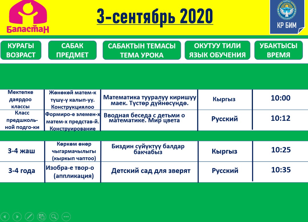 В ведомстве отметили, что на телеканале ОТРК «Баластан» будут транслироваться как занятия по программе «Наристе» для подготовки к школе, так и по программе развития детей от 3 до 6 лет.