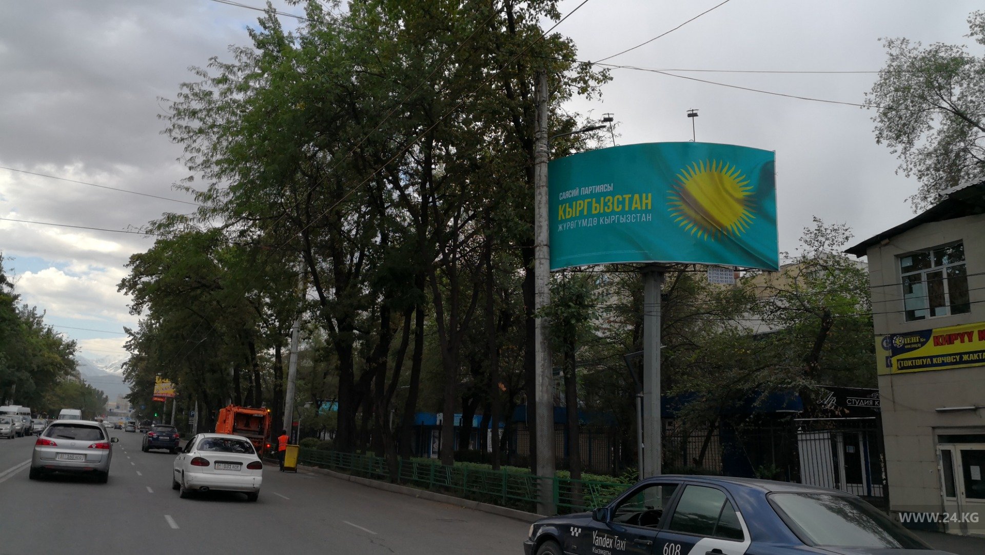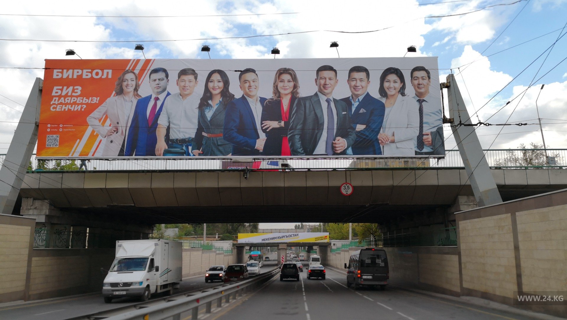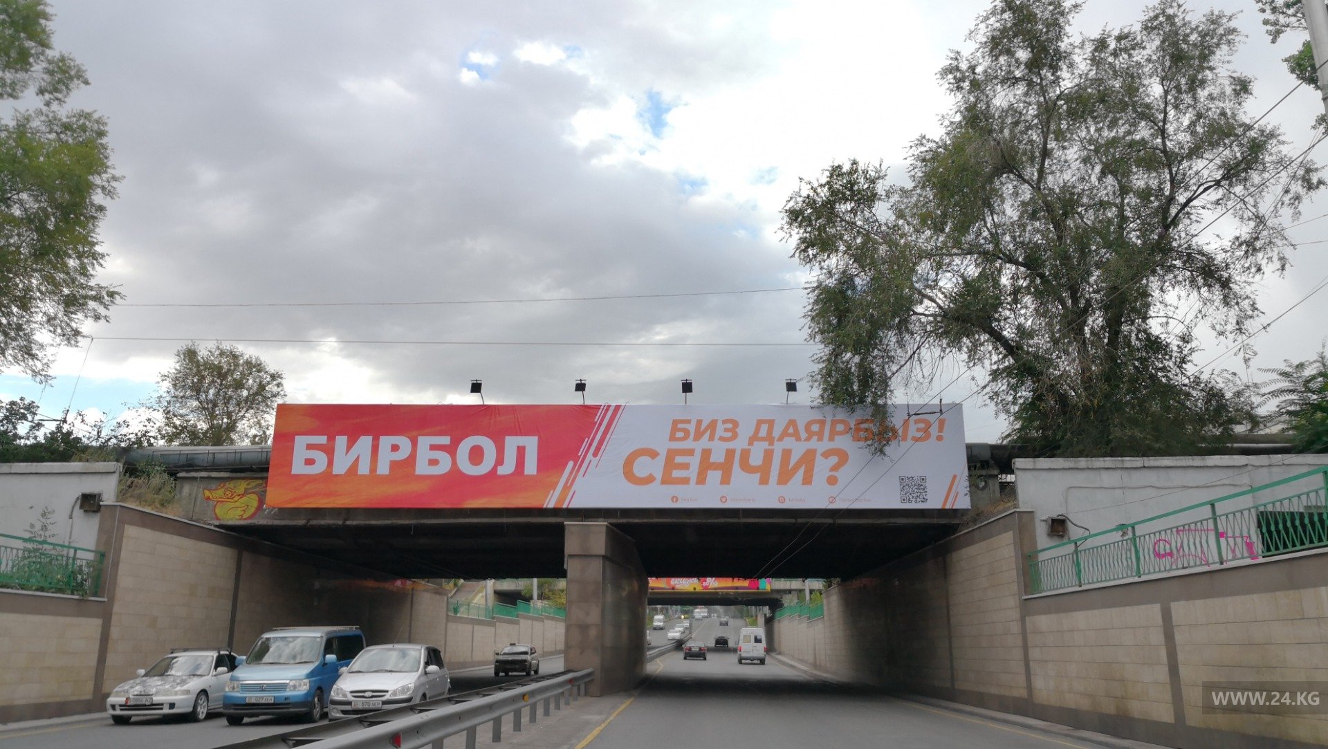 Партии «Мекеним Кыргызстан» и «Бир Бол» разместили свою рекламу тоже на мосту по Льва Толстого. Вчера эти рекламные площадки пустовали, а сегодня здесь уже размещена агитация.
