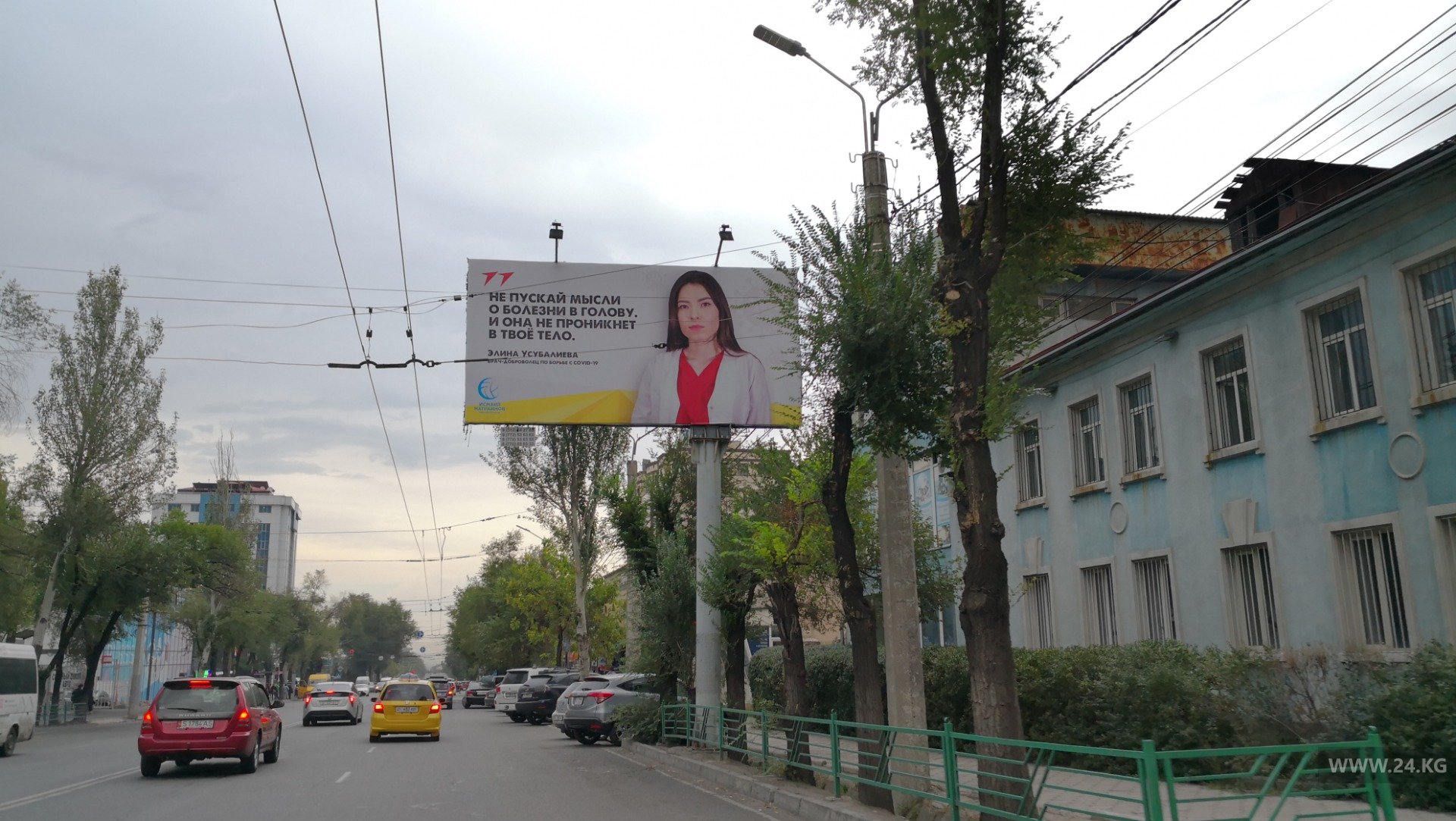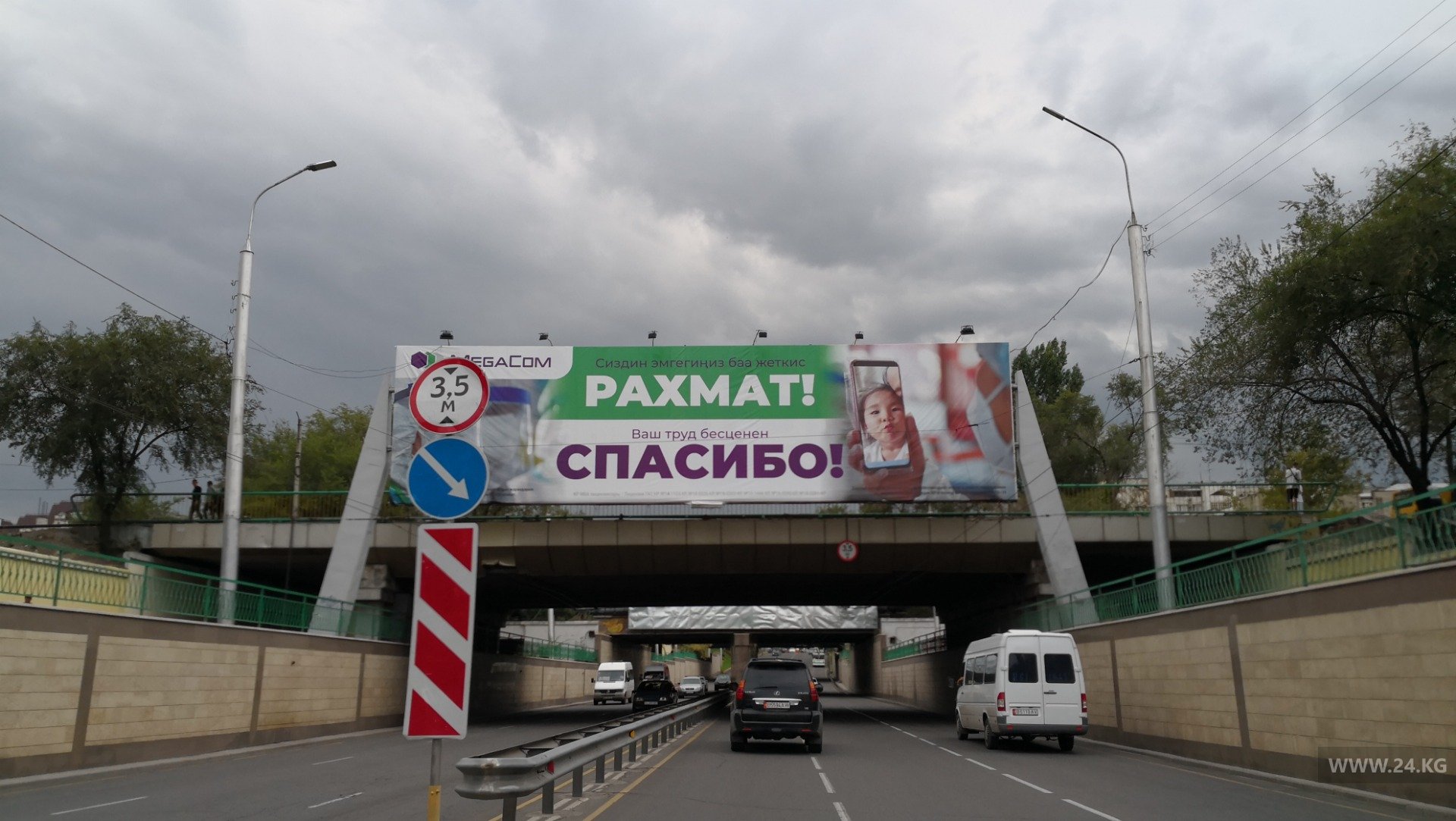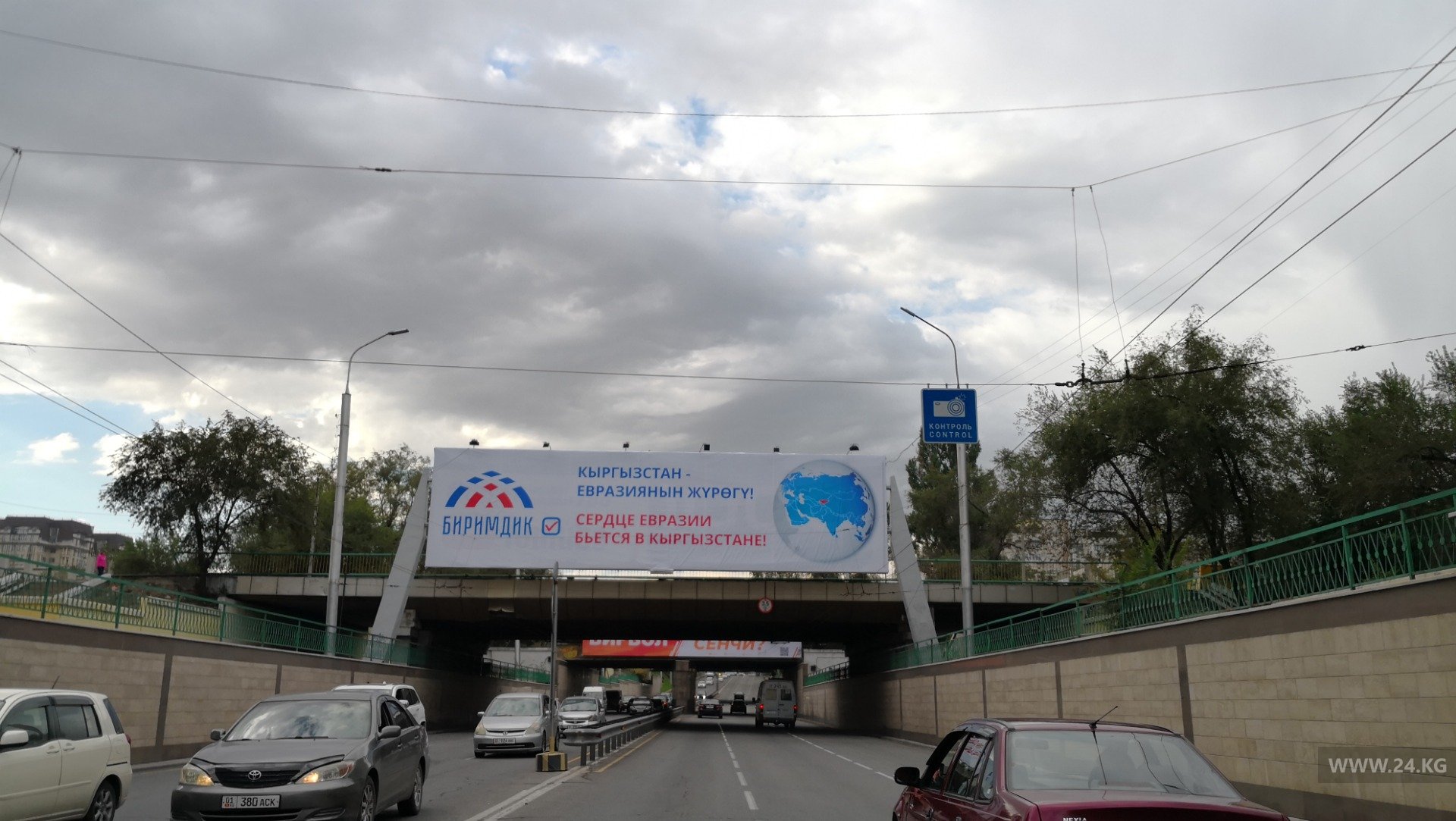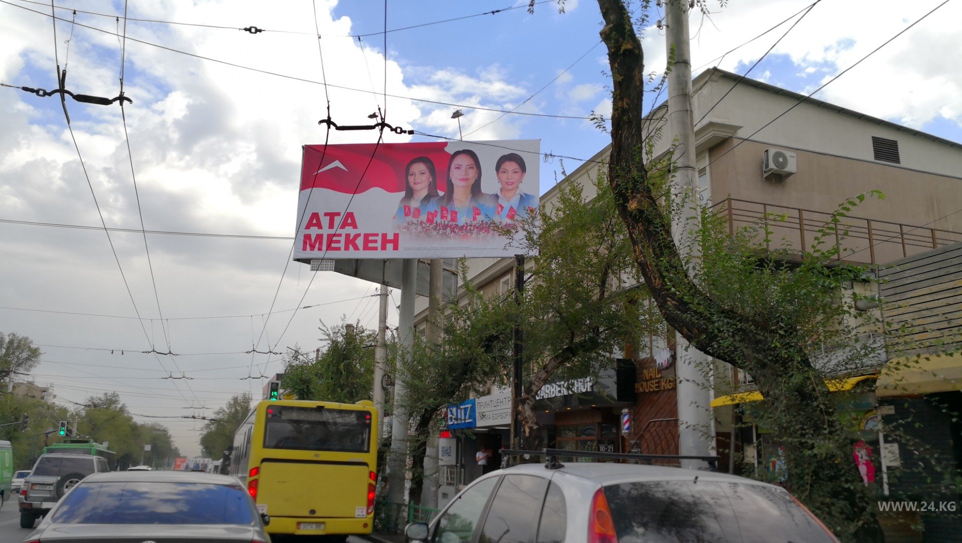 Партии «Мекеним Кыргызстан» и «Бир Бол» разместили свою рекламу тоже на мосту по Льва Толстого. Вчера эти рекламные площадки пустовали, а сегодня здесь уже размещена агитация.
