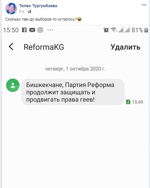 В Кыргызстане абоненты мобильных операторов О!, Beeline и MegaCom получили SMS-сообщения якобы от политической партии «Реформа».