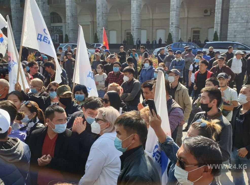 В Бишкеке около здания Жогорку Кенеша проходит митинг политической партии «Социал-демократы Кыргызстана».