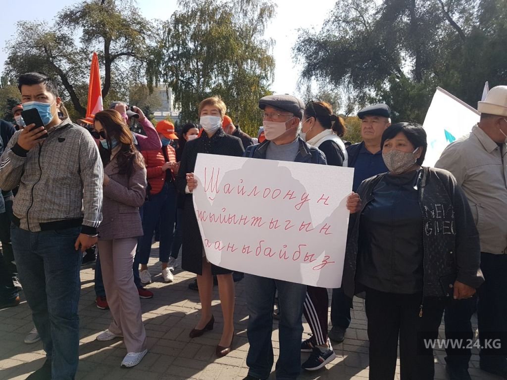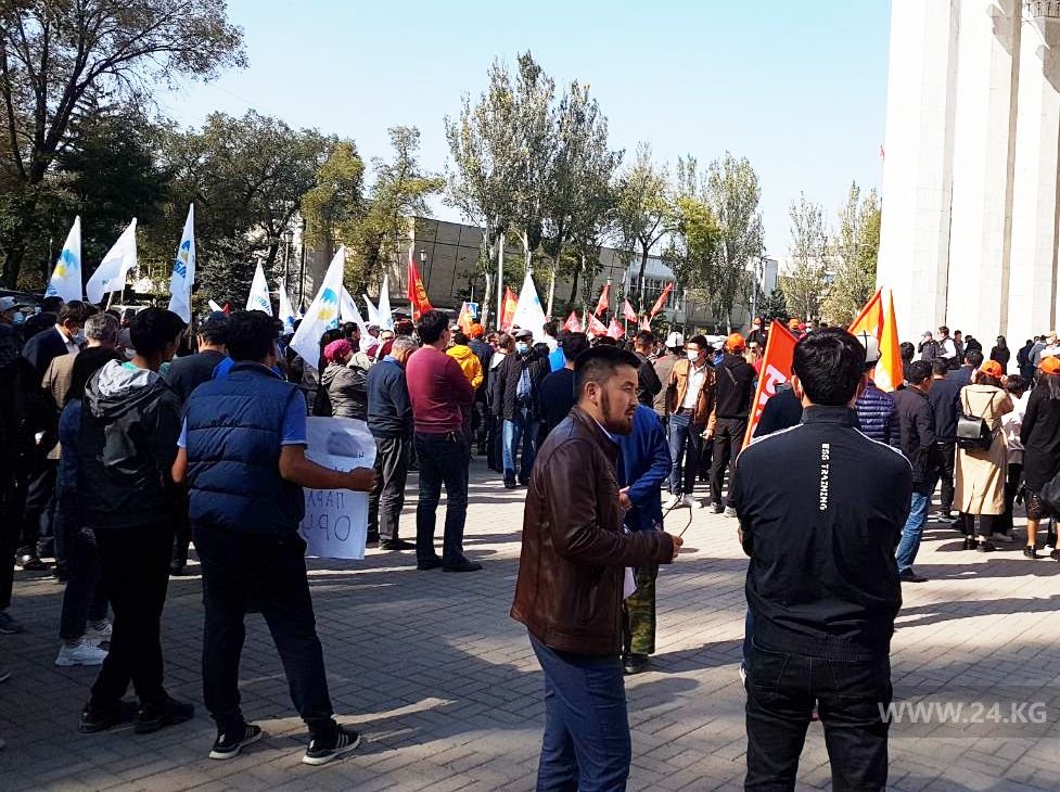 Партии «Республика», «Бир Бол», «Замандаш» и «Ата Мекен» вышли на митинг у здания Кыргызского национального академического театра оперы и балета имени Абдыласа Малдыбаева.
