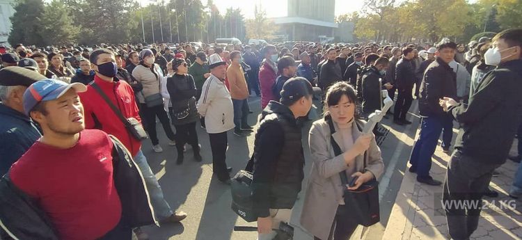 Сторонники Садыра Жапарова окружили Дом правительства на Старой площади Бишкека. Люди продолжают прибывать. Собралось, по разным оценкам, от 2,5 тысячи до 3 тысяч человек.