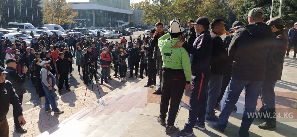 Сторонники первого вышли на акцию протеста к Дому правительства после того, как Тилек Токтогазиев заявил, что он назначен и. о. премьер-министра Кыргызстана.