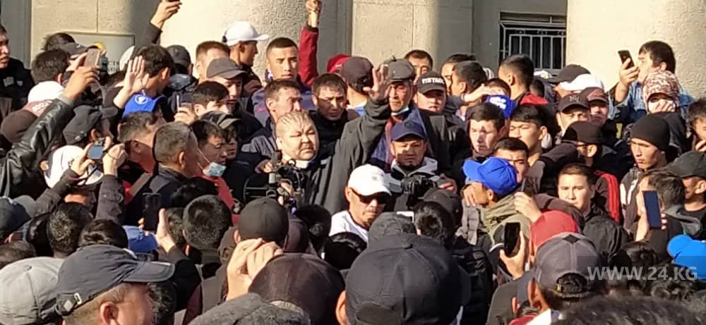 Люди еще продолжают присоединяться к акции протеста. Они призывают дать Садыру Жапарову два месяца поработать премьер-министром. За это время он обещает навести порядок в стране.