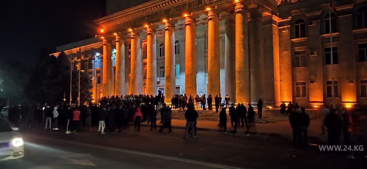 На Старой площади Бишкека у Дома правительства продолжается митинг сторонников Садыра Жапарова.