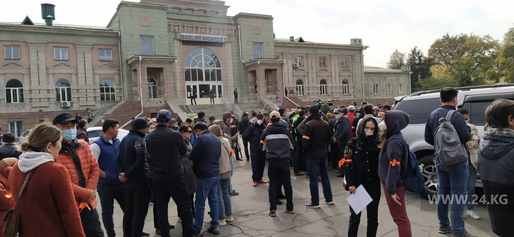 У железнодорожного вокзала собираются участники мирного марша против ОПГ. Уже пришли около 500 человек. Они намерены пойти на площадь Ала-Тоо.