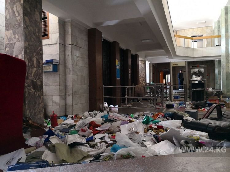 Журналист 24.kg побывал в «Белом доме», который громили в ночь с 5 на 6 октября. Пока объект находится под присмотром простых граждан.